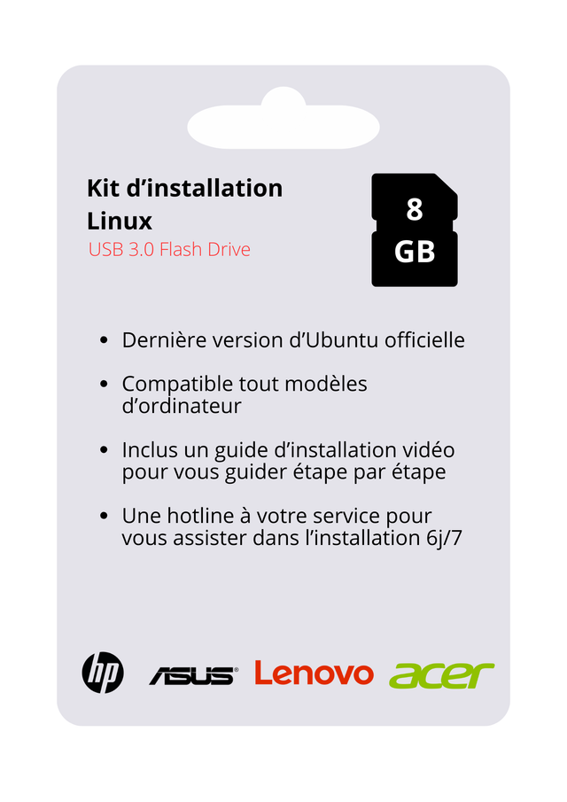 - Avant tout achat, assurez-vous de la compatibilité du système d'exploitation avec votre matériel- Insérez la clé USB et suivez les étapes grâce à notre guide explicatif.